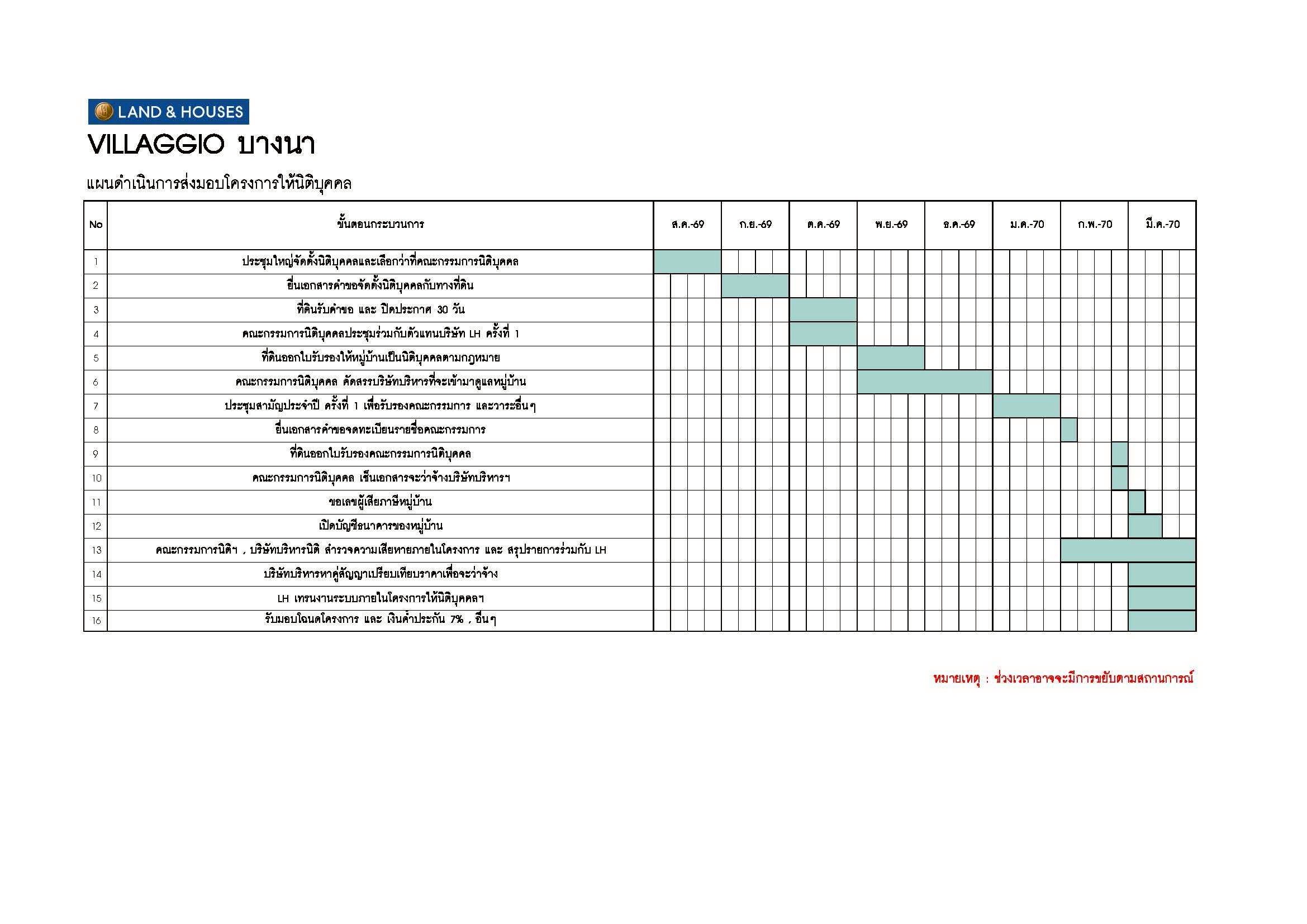 แผนดำเนินการส่งมอบโครงการให้นิติบุคคล